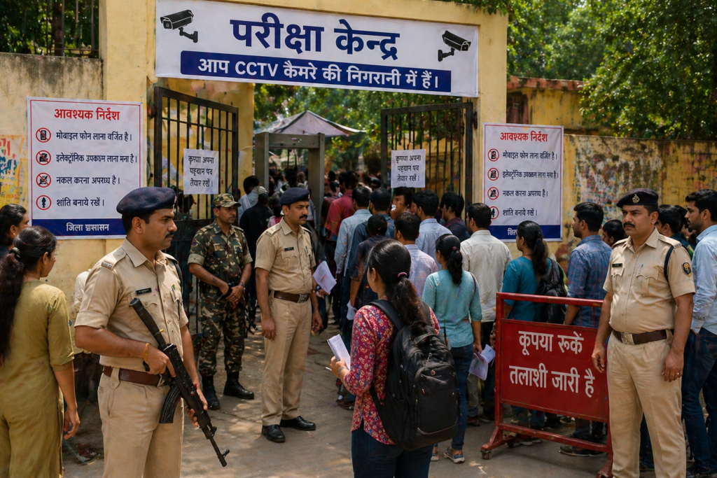 परीक्षा केंद्रों में प्रवेश से पहले अभ्यर्थियों की कड़ी जांच की जा रही है। एडमिट कार्ड और वैध पहचान पत्र के सत्यापन के बाद ही उम्मीदवारों को अंदर जाने की अनुमति दी जा रही है। इसके अलावा मोबाइल फोन, स्मार्ट वॉच, ब्लूटूथ डिवाइस और अन्य इलेक्ट्रॉनिक गैजेट्स पर पूरी तरह प्रतिबंध लगाया गया है।