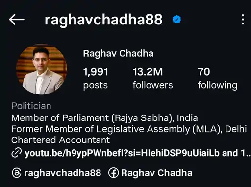 राघव चड्ढा के इंस्टाग्राम फॉलोअर्स में आई भारी गिरावट यह दिखाती है कि आज के दौर में राजनीतिक फैसलों का असर सिर्फ संसद या सड़कों तक सीमित नहीं है, बल्कि डिजिटल प्लेटफॉर्म पर भी तुरंत दिखता है।