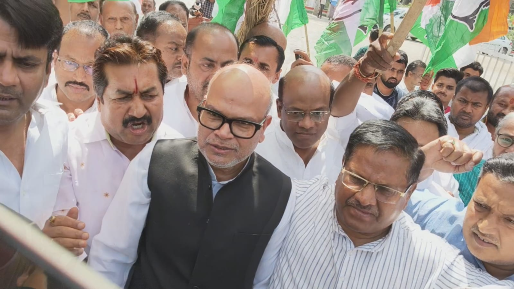 इस दौरान “वोट चोर, विधायक चोर” और “विधायक चोरी बंद करो” जैसे नारे लगाए गए। प्रदर्शन में प्रदेश कांग्रेस अध्यक्ष राजेश राम भी मौजूद रहे, जिन्होंने आरोप लगाया कि विधायकों पर दबाव बनाया जा रहा है।
